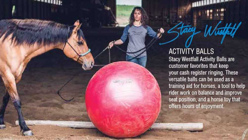 Denne multifunksjons ballen leveres nå i tre størrelser og kan brukes som en hjelp til trening av hesten samt som et verktøy til å hjelpe ryttere til å bedre sits og balanse. Den kan også brukes som en leke for hesten.