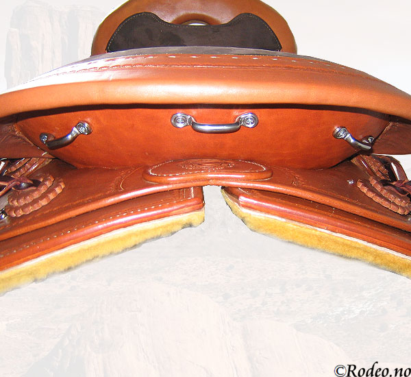 Denne salen har ekstra mange festemuligheter. (se store bilder). Med et elegant kantmønster og festereimer for enkelt å feste ønsket utstyr på salen.