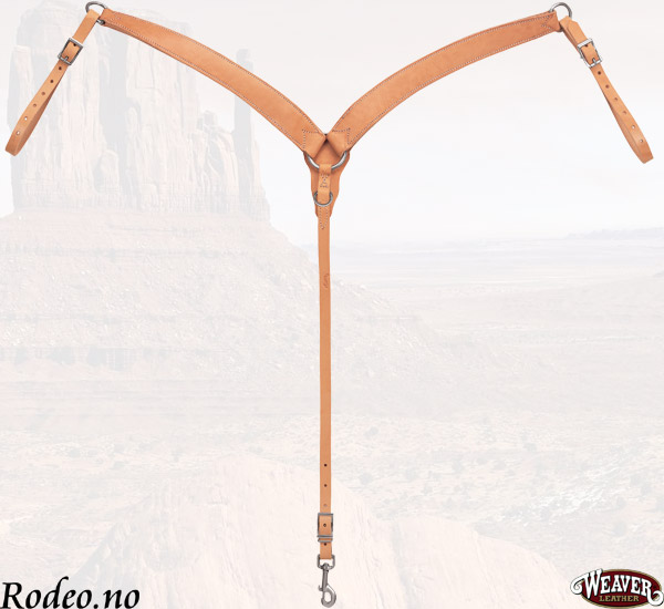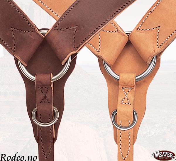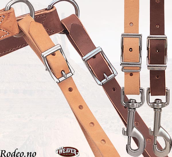 Dobbeltsydd modell fra Weaver i kraftig bredt formsydd lær. Ekstra kraftige spenner og beslag. Et fortøy som er godt egnet til alsidig bruk. Konstruert for tøffe tak. Ekstra beskytter av lær bak den midtre ringen hindrer gnag og ubehag.